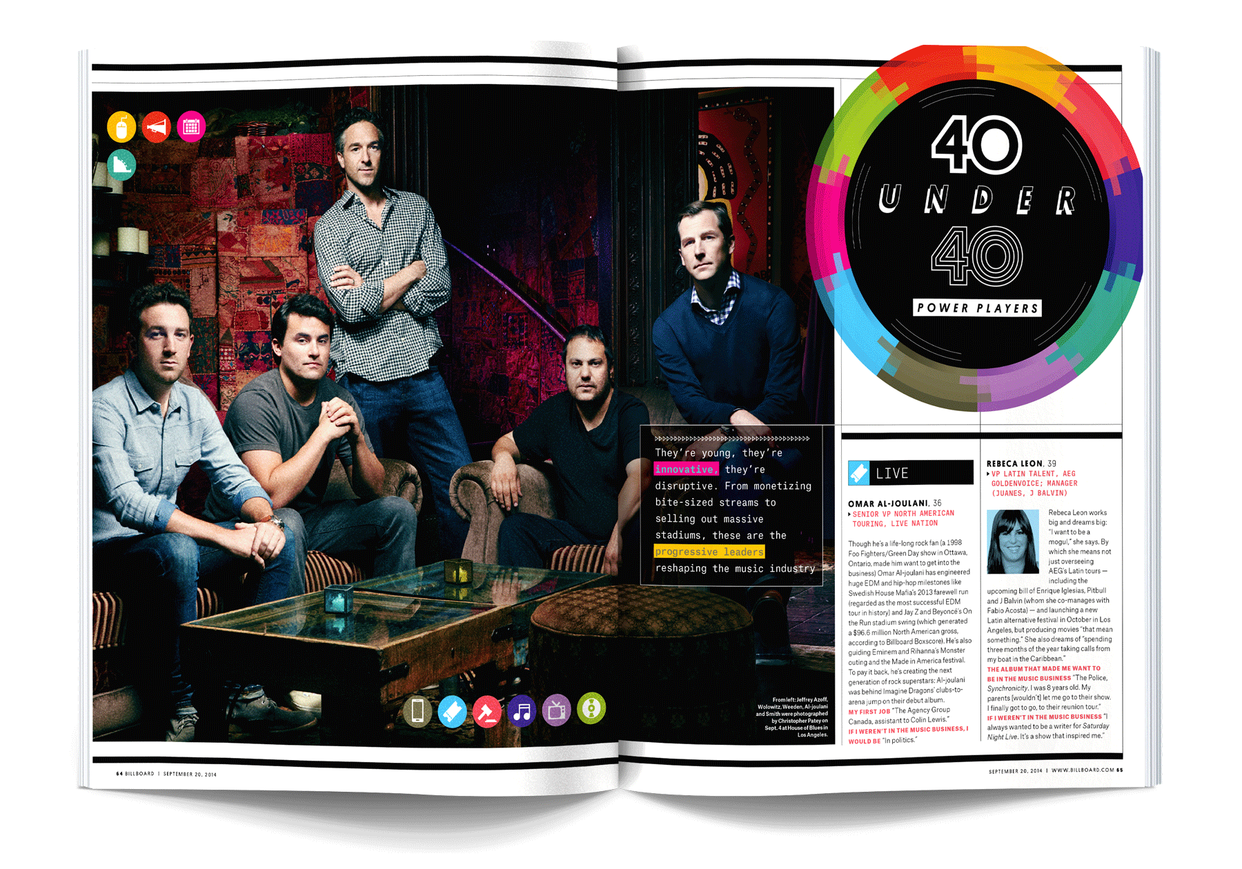 As art director at Billboard, Patrick designed cover stories, feature packages, and front-of-book sections that helped define Billboard’s visual identity as the “music industry’s Bible.” He developed the style guide and led the redesign of Billboard’s website, video and social media imagery, ensuring cohesive brand presence across print and digital.